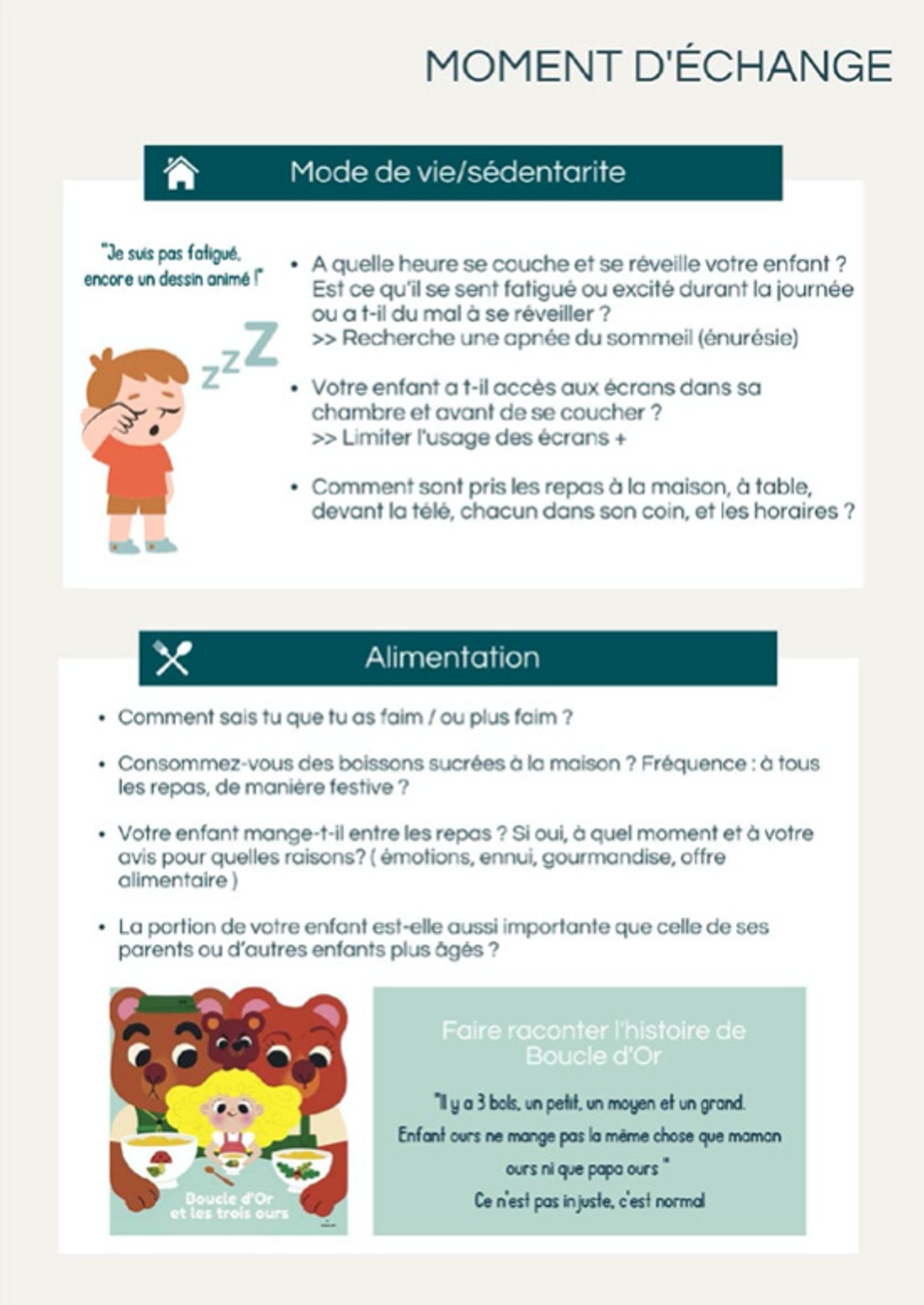 Ce guide, à destination des médecins généralistes et mis à disposition sur BANCO, propose des questions à poser à la famille et à l’enfant afin d’explorer les principaux déterminants à la prise pondérale et pour guider la démarche de prise en charge.